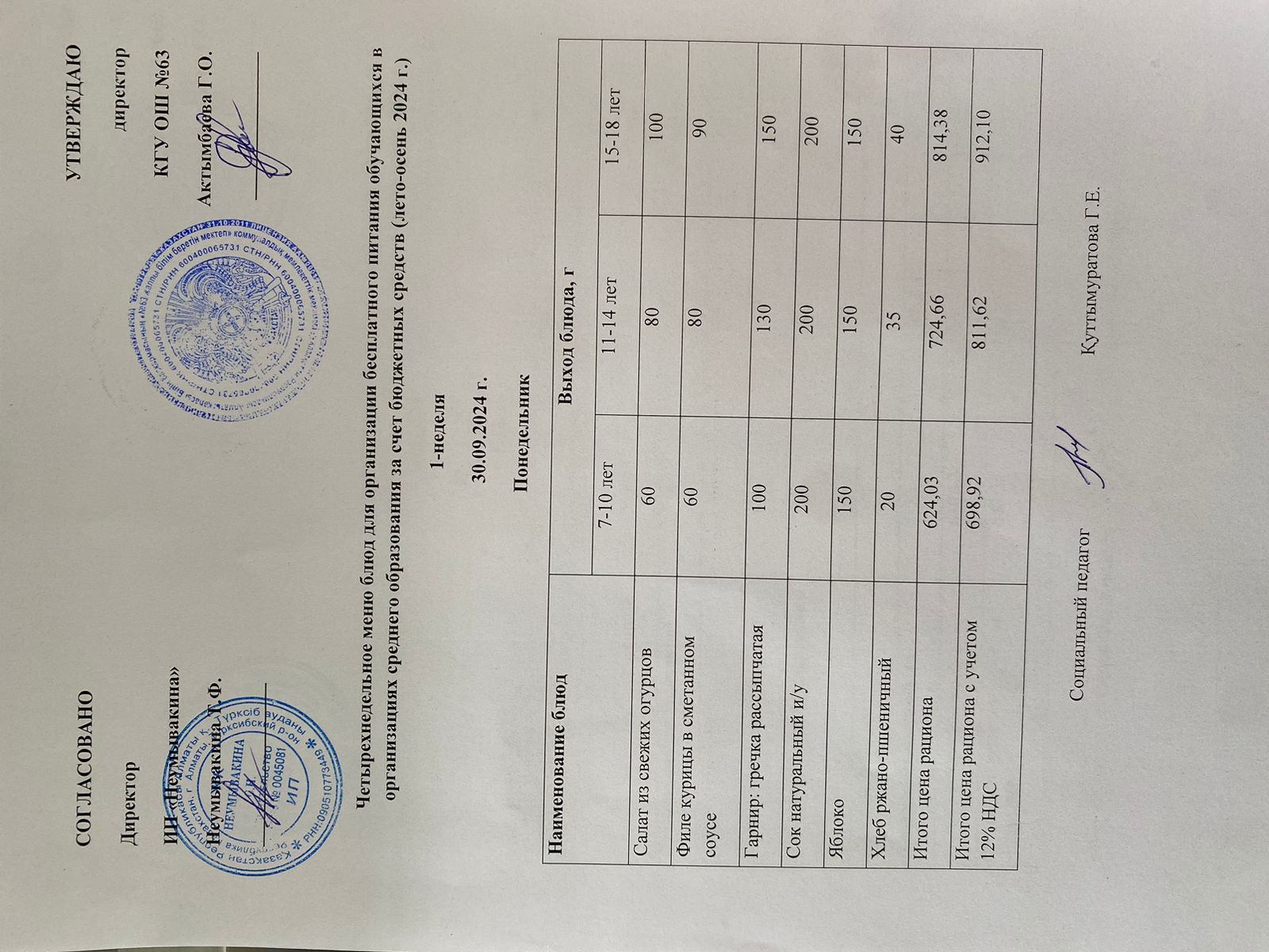 Ас мәзірі 30.09.2024