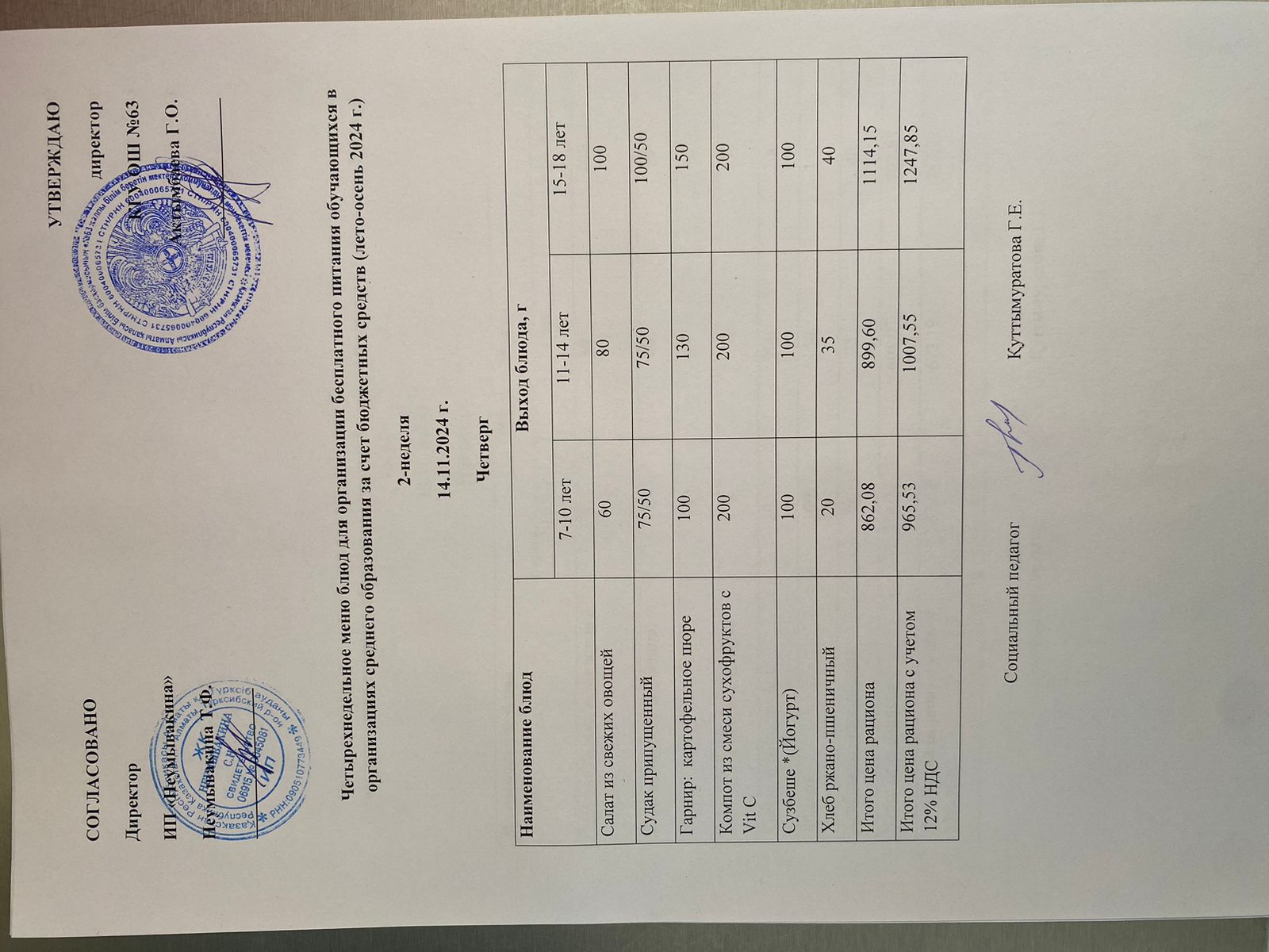 Ас мәзірі 14.11.2024