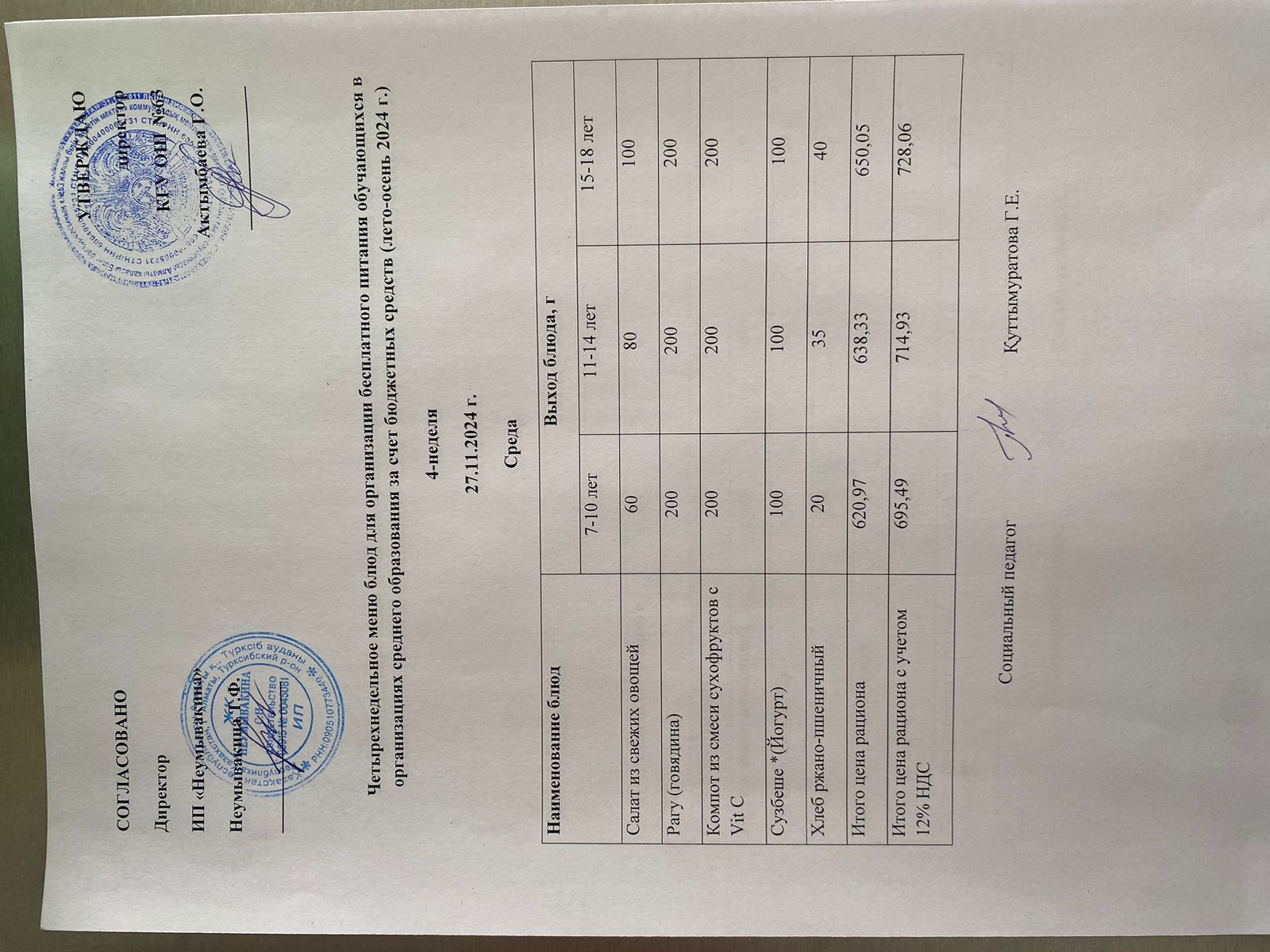 Ас мәзірі 27.09.2024