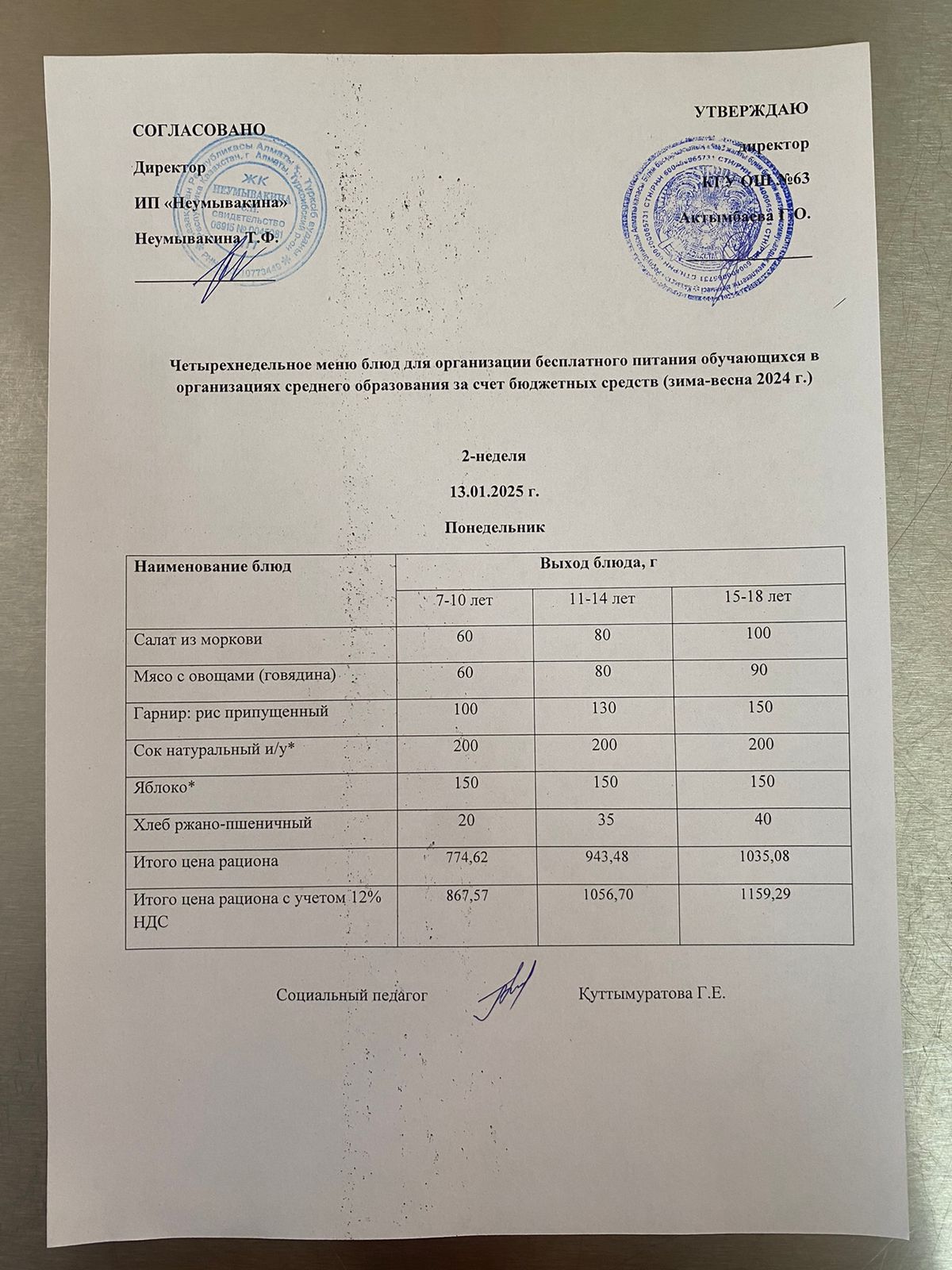 Ас мәзірі 13.01.2025