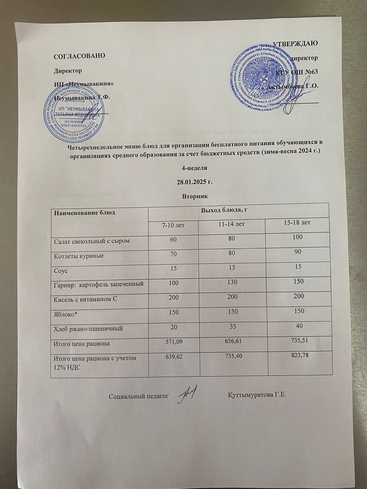Ас мәзірі 28.01.2025