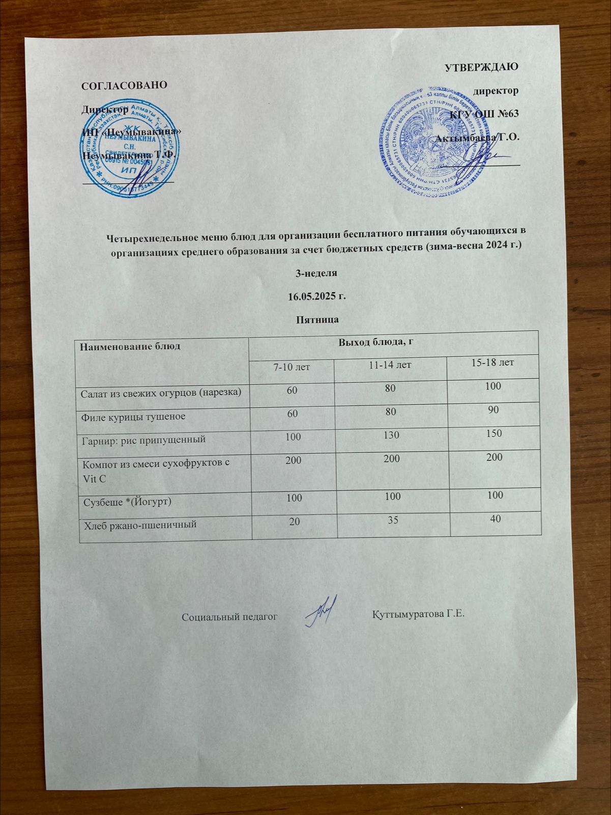 Ас мәзірі 16.05.2025